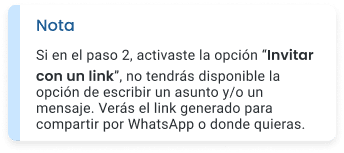 Escribe un asunto y/o un mensaje para tus invitados.